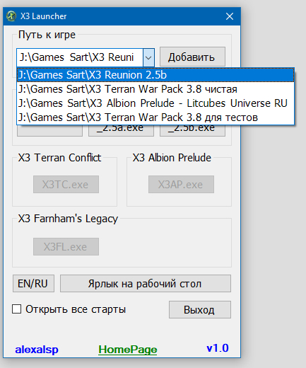 1. Поддерживаемые игры - X3: Reunion (с поддержкой версий: X3.exe, X3_reunion_2.5a.exe, X3_reunion_2.5b.exe) - X3: Terran Conflict (X3TC.exe) - X3: Albion Prelude (X3AP.exe) - X3: Farnham's Legacy (X3FL.exe)
