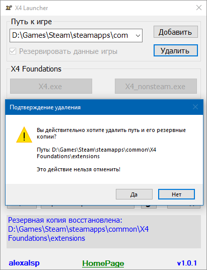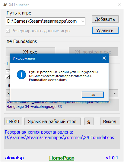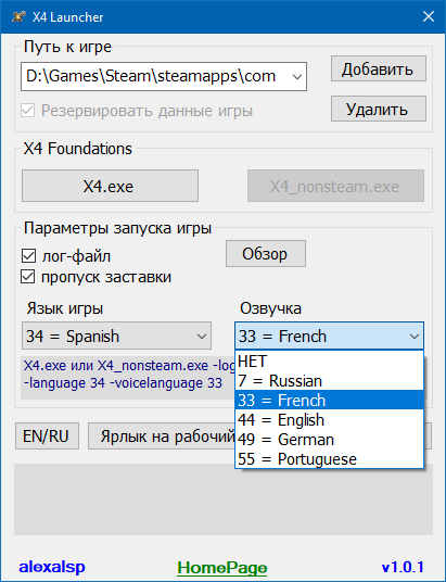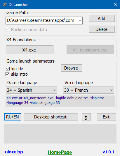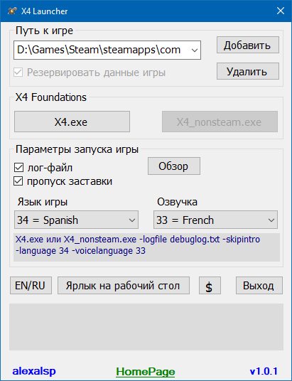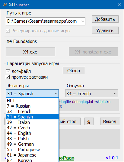 Запуск игры • Запуск через X4.exe (Steam/GOG версия) • Запуск через X4_nonsteam.exe No-Steam версия) • Автоматическое определение доступных исполняемых файлов