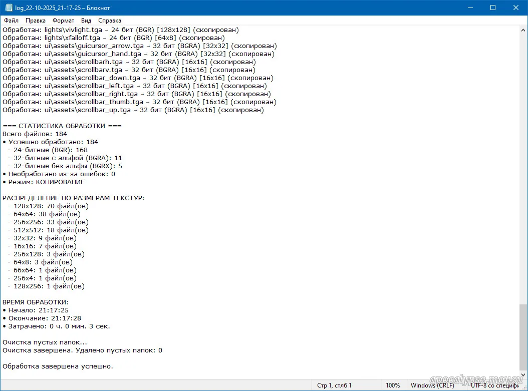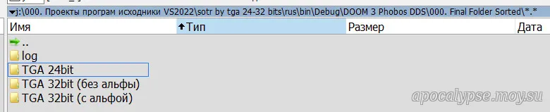 - Автоматическая сортировка TGA-файлов по битности и наличию альфа-канала.