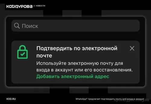 WhatsApp вслед за Telegram стал предлагать россиянам использовать почту для входа в аккаунт