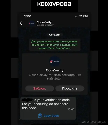 «Telegram начал рассылать коды авторизации по номеру телефона через мессенджер WhatsApp», — сказано в сообщении источника, которое опубликовано вместе с соответствующим снимком экрана, демонстрирующим работу упомянутой функции. На изображении видно, как от пользователя CodeVerify приходит сообщение с кодом авторизации. «Ваш код подтверждения. В целях безопасности не передавайте его третьим лицам», — говорится в сообщении, пришедшем вместе с проверочным кодом.