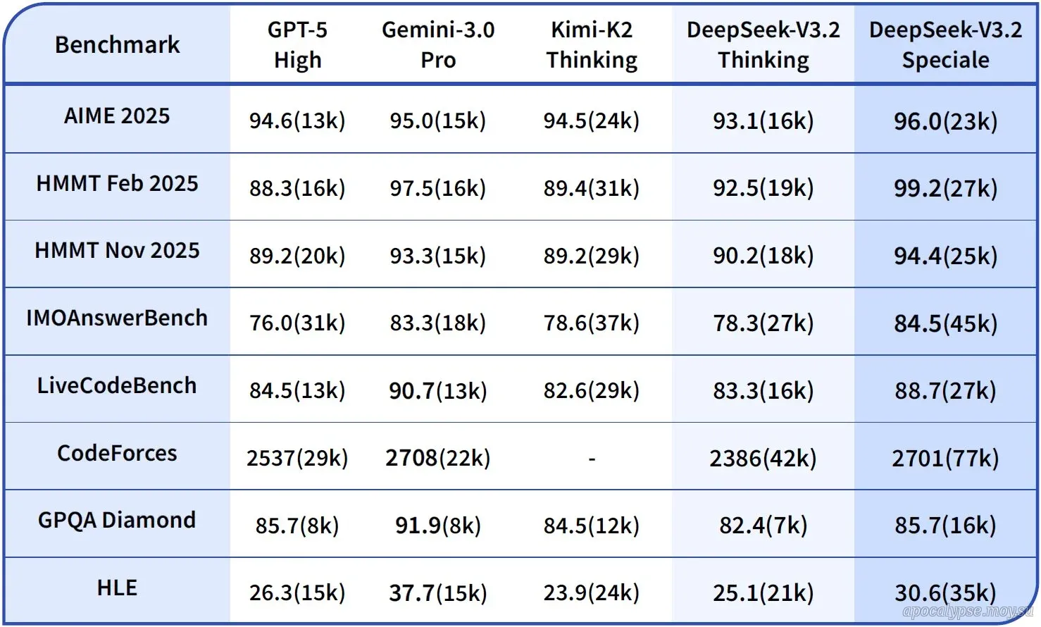 DeepSeek утверждает, что модели серии V3.2 — это её первые нейросети, созданные для ИИ-агентов. Компания заявляет, что DeepSeek V3.2 обеспечивает производительность уровня GPT 5 при выполнении общих задач. Китайский стартап также утверждает, что DeepSeek-V3.2-Speciale обладает способностями к рассуждению, сопоставимыми с новейшей моделью Gemini 3 Pro от Google, особенно в сложных сценариях решения проблем.