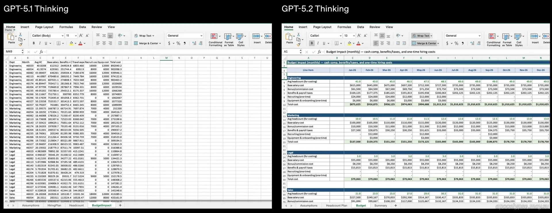 GPT-5.2, по заявлению OpenAI, превосходит предшественников в четырёх областях: построение таблиц и работа с данными, создание презентаций, восприятие и анализ изображений, а также написание кода и работа с длинным контекстом. Модель доступна в ChatGPT в трёх вариантах: Instant, Thinking и Pro.