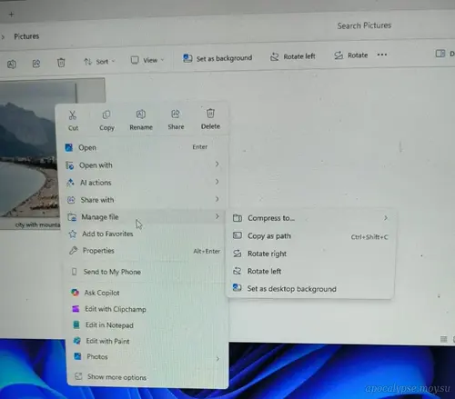 Помимо технических правок, компания занимается и чисткой интерфейса. Инсайдеры заметили изменения в контекстном меню, которое многие пользователи считают перегруженным. Ряд редко используемых функций теперь переносится в отдельное вложенное меню. Такие опции, как Сжать до, Копировать как путь, Повернуть и Сделать фоном рабочего стола, группируются в новом разделе, который в тестовых версиях носит название Управление файлом или Другие действия.