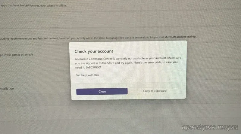 «Я попал в цикл, когда предустановленный Alienware Command Center выдавал мне ошибку с кодом 0x803F8001. Судя по тому, что я выяснил, это связано с тем, что Microsoft Store не находит приложение или не может выполнить какую-то операцию», — говорилось в одном из таких сообщений на форуме Reddit.