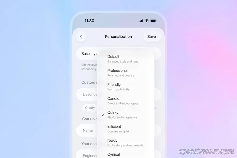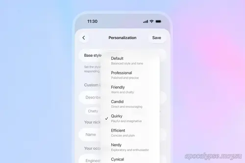 Но одним лишь выпуском новых моделей OpenAI не ограничилась. В рамках обновления компания также заявила, что расширит набор предустановленных личностей ChatGPT, от которых зависит разговорный тон бота. Полный список опций теперь включает: «По умолчанию», «Профессиональный», «Дружелюбный», «Откровенный», «Эксцентричный», «Эффективный», «Занудный» и «Циничный». OpenAI также сообщила, что начнёт «эксперимент по поиску новых способов тонкой настройки стиля ChatGPT непосредственно в настройках», к которому некоторые пользователи получат доступ уже на этой неделе.