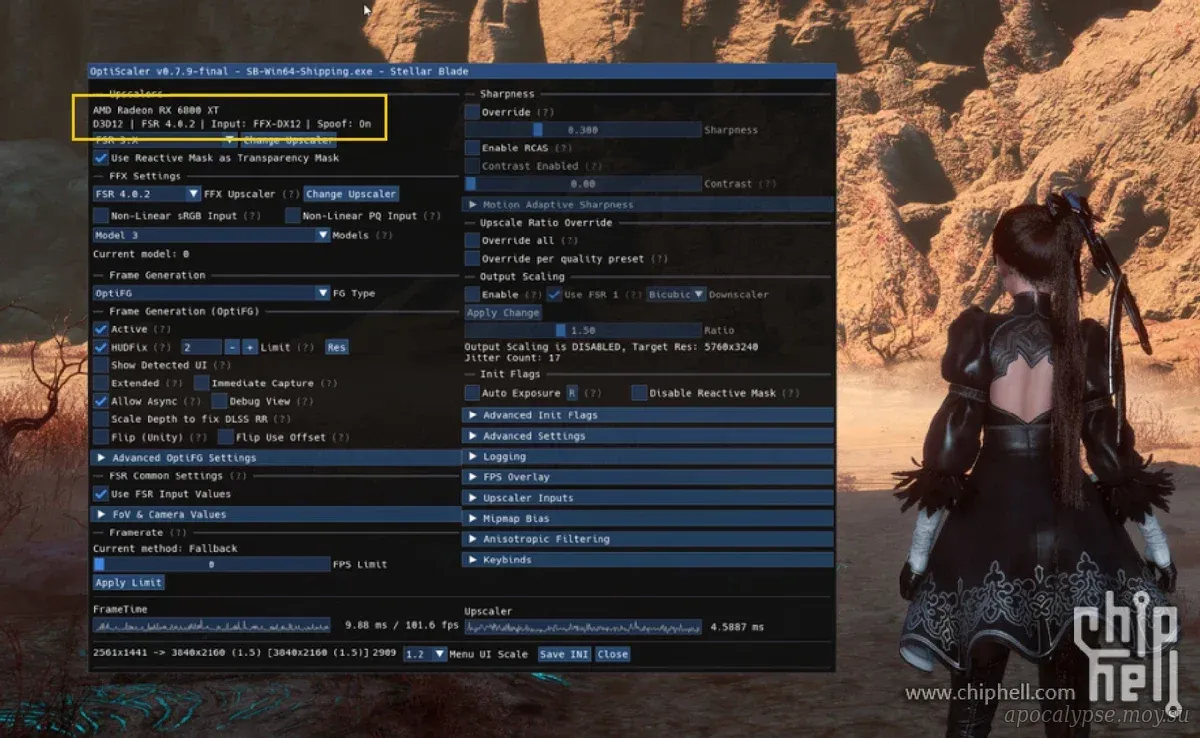 Далее важно в первый раз запустить игру и переключить в настройках DLSS в режим "Качество". Закрываем игру, заменяем файл amd_fidelityfx_upscaler из шедших в комплекте с Optiscaler на отдельно скаченный и повторно запускаем игру. Теперь после нажатия клавиши Insert на клавиатуре внутри игры можно будет выбрать FSR 3.X на роль основного апскейлера и нажать Change Upscaler, а в FFX Settings можно выбрать FSR 4.0.2, если таковой не был выбран приложением автоматически. Вот и все, вы пользуетесь FSR 4 на своей видеокарте. Уточню лишь один момент — после нажатия кнопки Change Upscaler развлечение может зависнуть на пару минут. Если звуки из игры все еще слышны, то все нормально — просто подождите применения настройки.