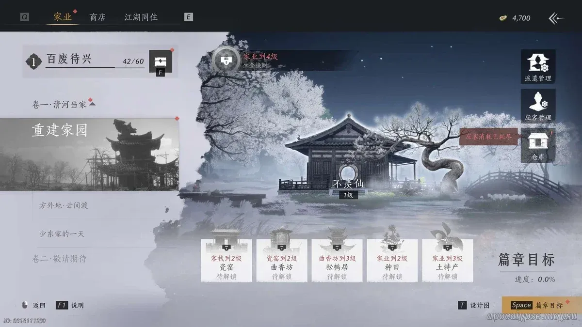 После прохождения короткого вступительного квеста открывается ключевая одноименная механика, суть которой заключается в возрождении некогда уничтоженных зданий родной деревни главного героя, налаживании их автоматической работы, поиске рабочих и создании стабильного источника дохода.
