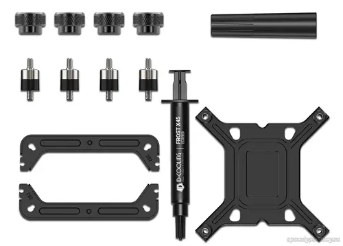 В состав системы охлаждения входит 120-мм вентилятор AF-125-K. Он работает со скоростью от 500 до 2000 об/мин, создаёт воздушный поток 78,25 CFM, статическое давление 2,68 мм вод. ст. и обладает уровнем шума не выше 29,85 дБА. На основание кулера нанесена фирменная термопаста Frost X45.