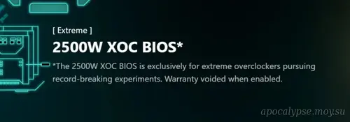 На странице модели Lightning Z упоминается специальная версия BIOS XOC на 2500 Вт. Изначально предполагалась, что данная версия прошивки будет доступна только для модели Lightning Z OCER.